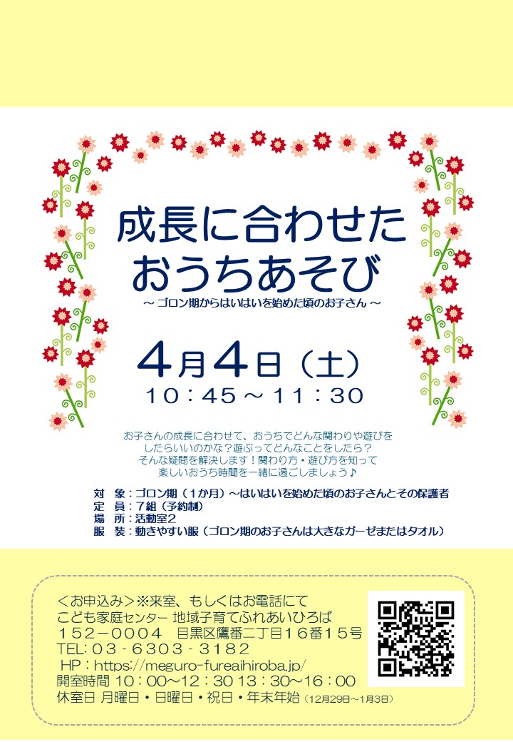 4月4日(土)成長に合わせたおうちあそび