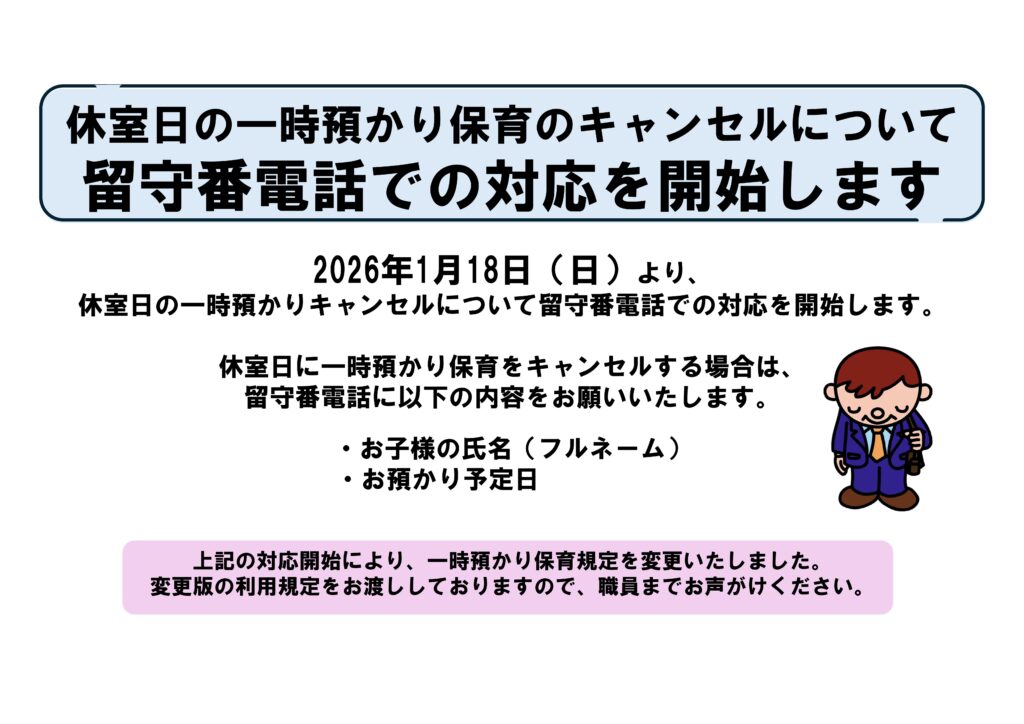 休室日の一時預かり保育のキャンセルについて