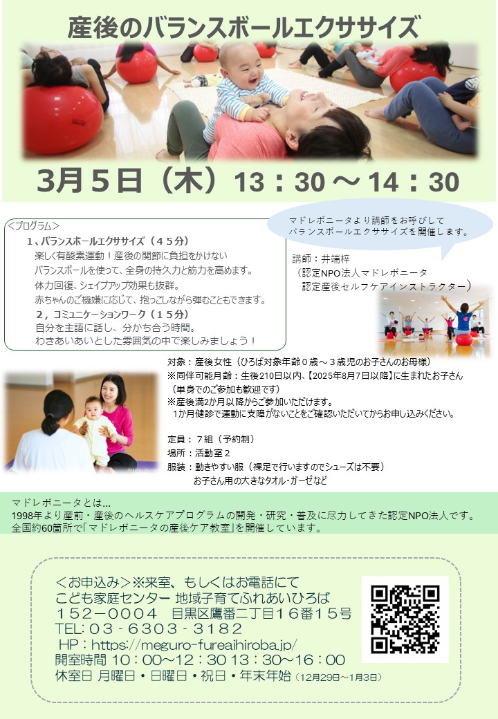 3月5日(木)産後のバランスボール エクササイズ